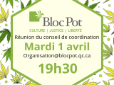 Cher(e)s membres du Bloc Pot, vous êtes convié(e)s à la réunion mensuelle du conseil de coordination du Bloc Pot mardi le 1er avril 2025.