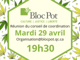 Cher(e)s membres du Bloc Pot, vous êtes convié(e)s à la réunion mensuelle du conseil de coordination du Bloc Pot mardi le 29 avril 2025 à 19h30.